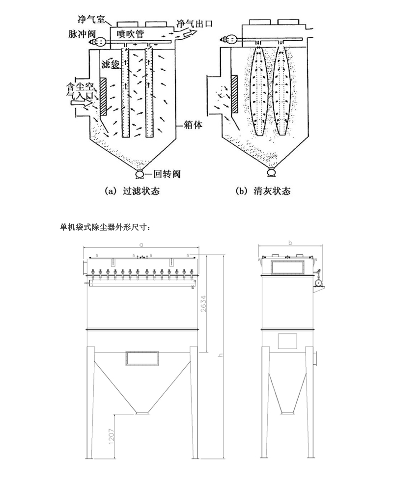 单机除尘器也被称作单机收尘器,是一种小型设计精细,机型灵巧但同时有高效节能的一种小型袋式除尘器,自投入市场以来,受到了广大用户的喜欢,与国内其它单机相比,具有清灰动能大,清灰效率高的特点。采用袋式过滤、在线脉冲喷吹;青灰(清灰过程无需停止风机运行).自带除尘风机。选型和工艺布置简单,操作方便。适用于分散,连续工作,小风量的扬尘点除尘。如皮带输送转运点,仓(库)顶,仓(库)底、小型磨机、破碎机、提升机等。